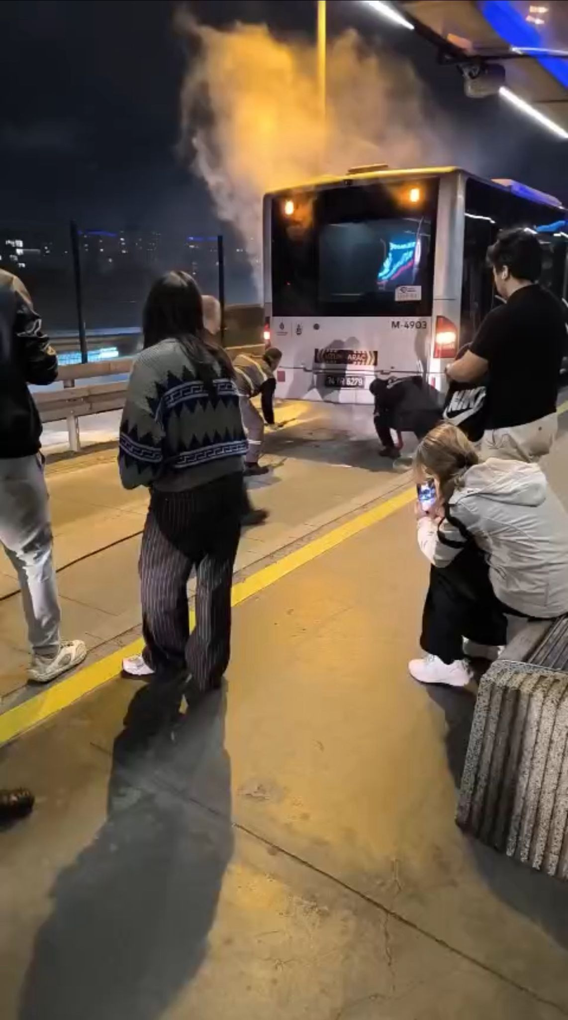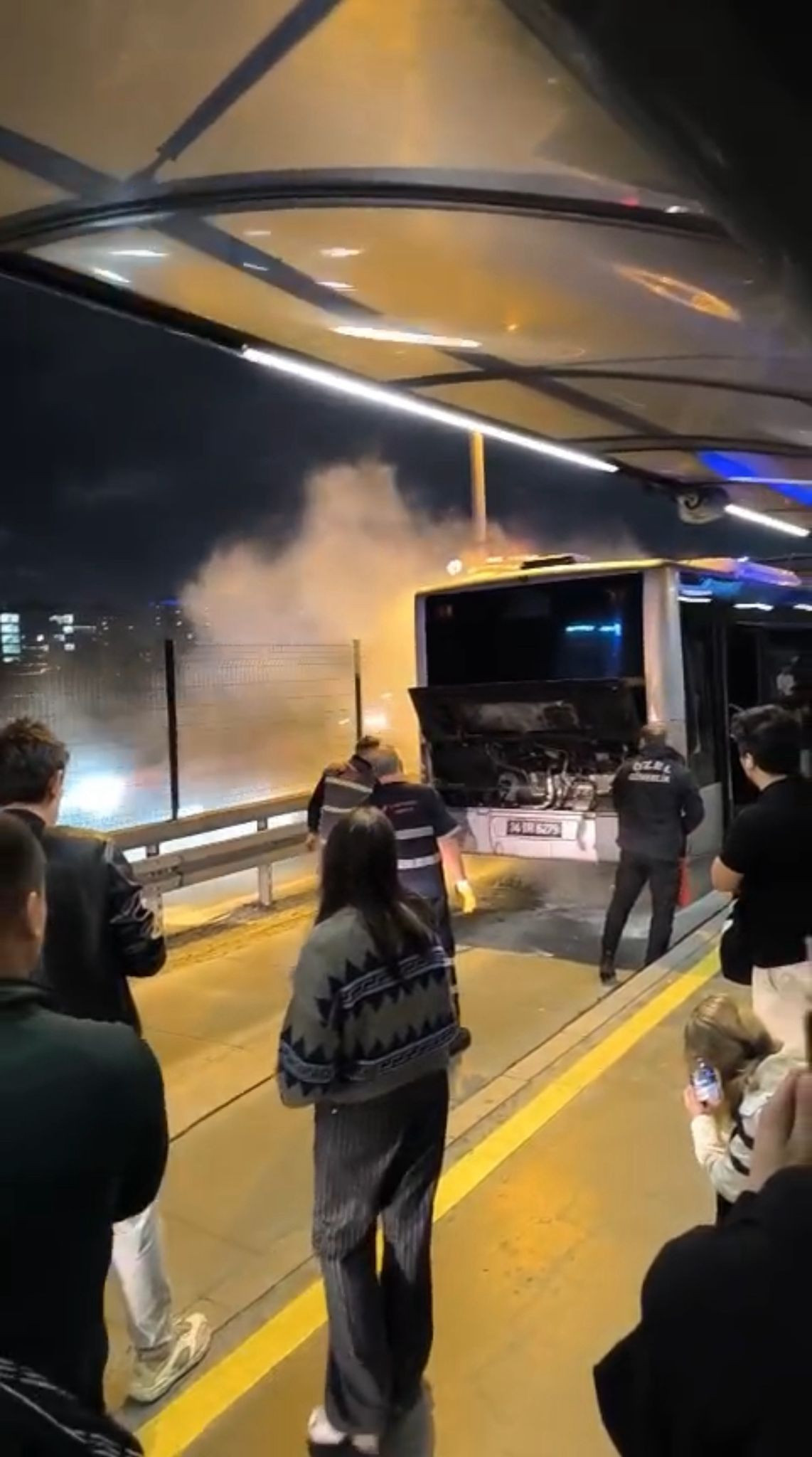 Yangın nedeniyle metrobüs seferlerinde kısa süreli aksama meydana geldi. Olay anı vatandaşlar tarafından cep telefonu kamerasıyla görüntülendi.