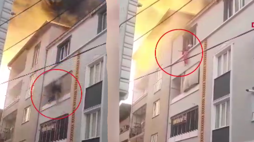Gürsu ilçesi Yenidoğan Mahallesi'ndeki 3 katlı binanın en üst katında, dün saat 19.00 sıralarında henüz belirlenemeyen nedenle yangın çıktı. Bu sırada evde olan Neriman G., torunu Sümeyye G.’yi de alıp pencereye çıkarak yardım istedi. Çevredekiler bir evden aldıkları battaniyeyi pencerenin altında açtı. Neriman G. pervazda tuttuğu torununu battaniyenin üzerine attı, ardından da kendisini boşluğa bıraktı. Neriman G., alt katın balkonuna çarptıktan sonra battaniyenin üzerine düştü. O anlar, cep telefonuyla görüntülendi.