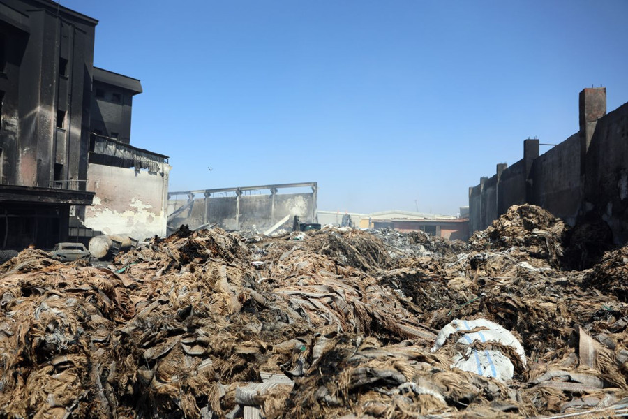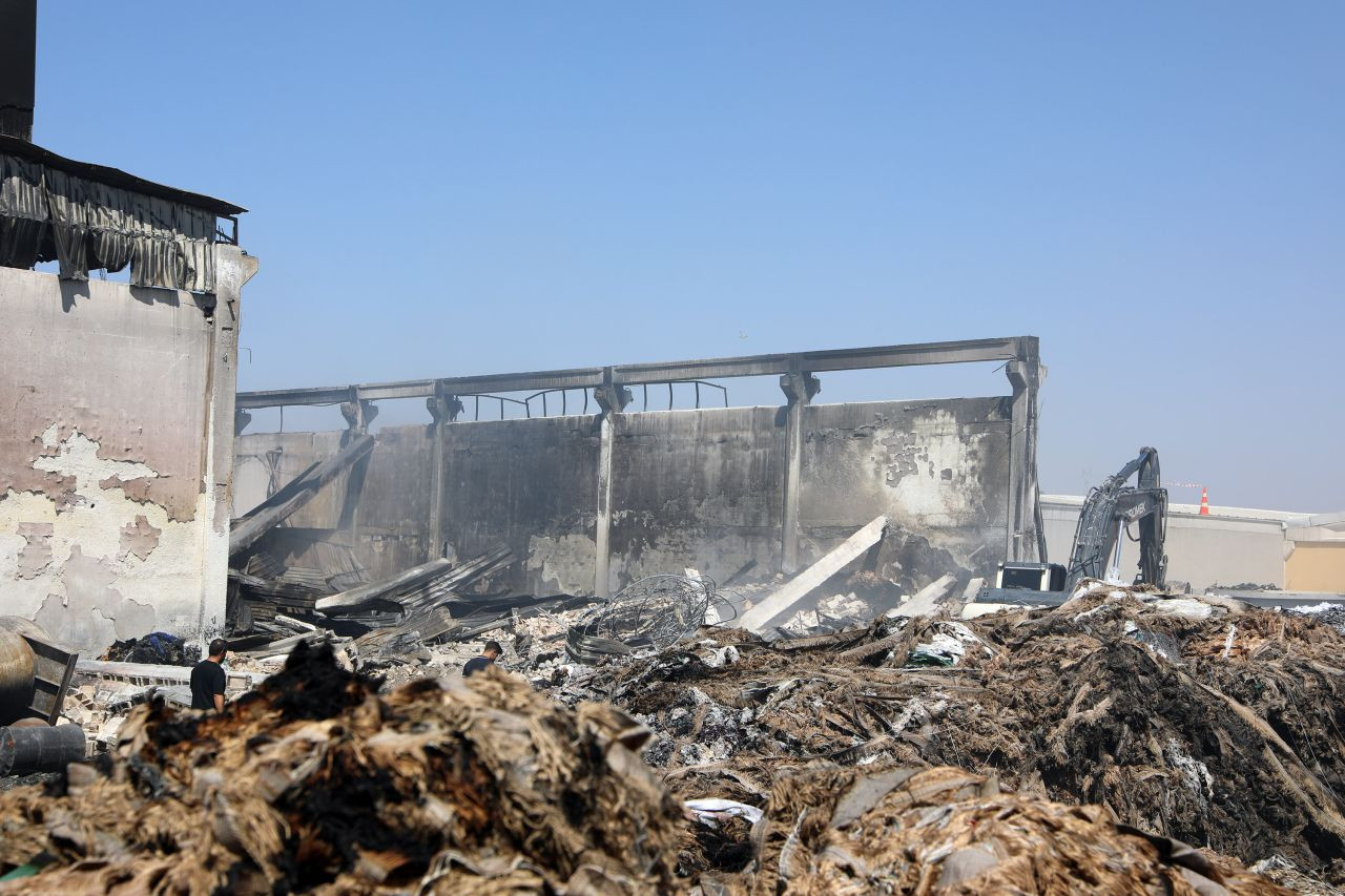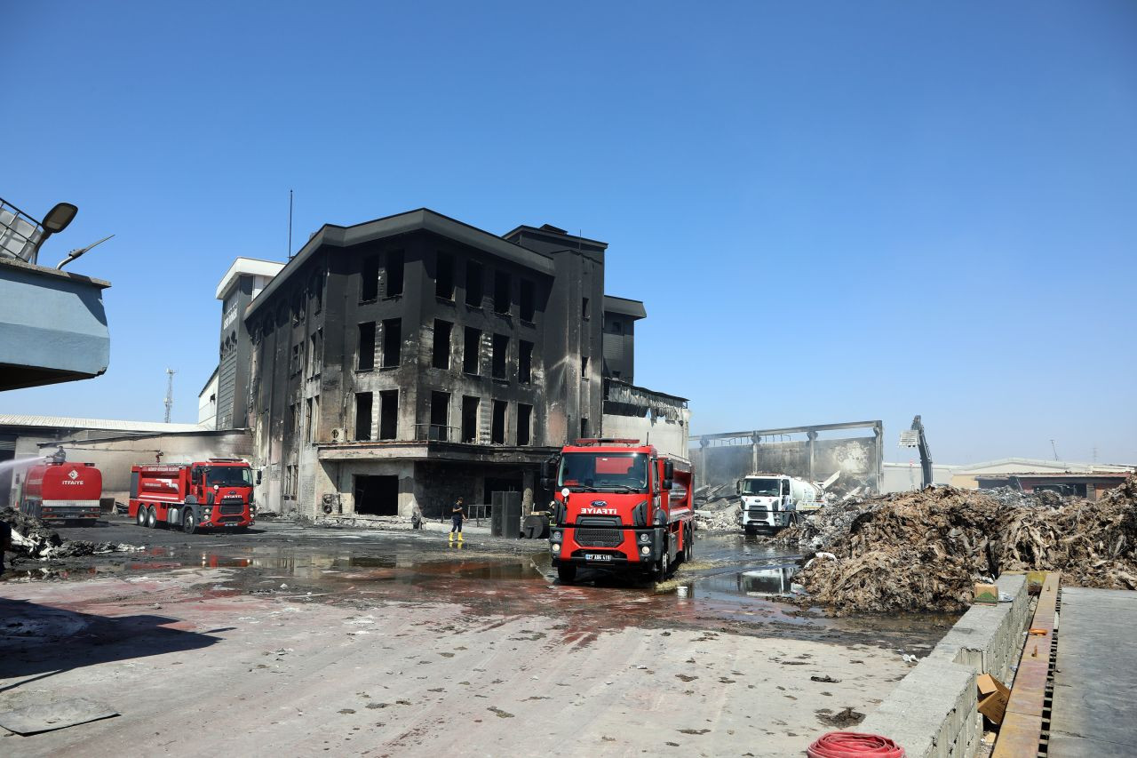 Gaziantep'te dün öğleden sonra yangın çıkan ve 8 saatte kontrol altına alınan geri dönüşüm fabrikasındaki hasar görüntülendi.