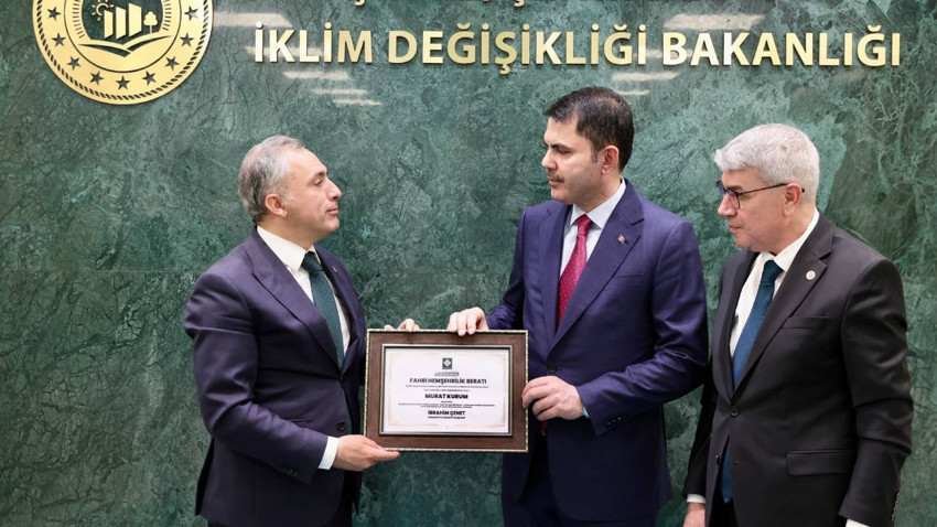 Deprem bölgesindeki çalışmaları nedeniyle daha önce Gaziantep, Malatya, Hatay ve Elazığ’ın fahri hemşehrisi ilan edilen Çevre, Şehircilik ve İklim Değişikliği Bakanı Murat Kurum’a Osmaniye Belediye Meclisi de geçen ay “Fahri Hemşehrilik Beratı” verme kararı almıştı. AK Parti Osmaniye Milletvekili Seydi Gülsoy ve Osmaniye Belediye Başkanı İbrahim Çenet, Bakan Kurum’u makamında ziyaret ederek beratı kendisine takdim etmişti.