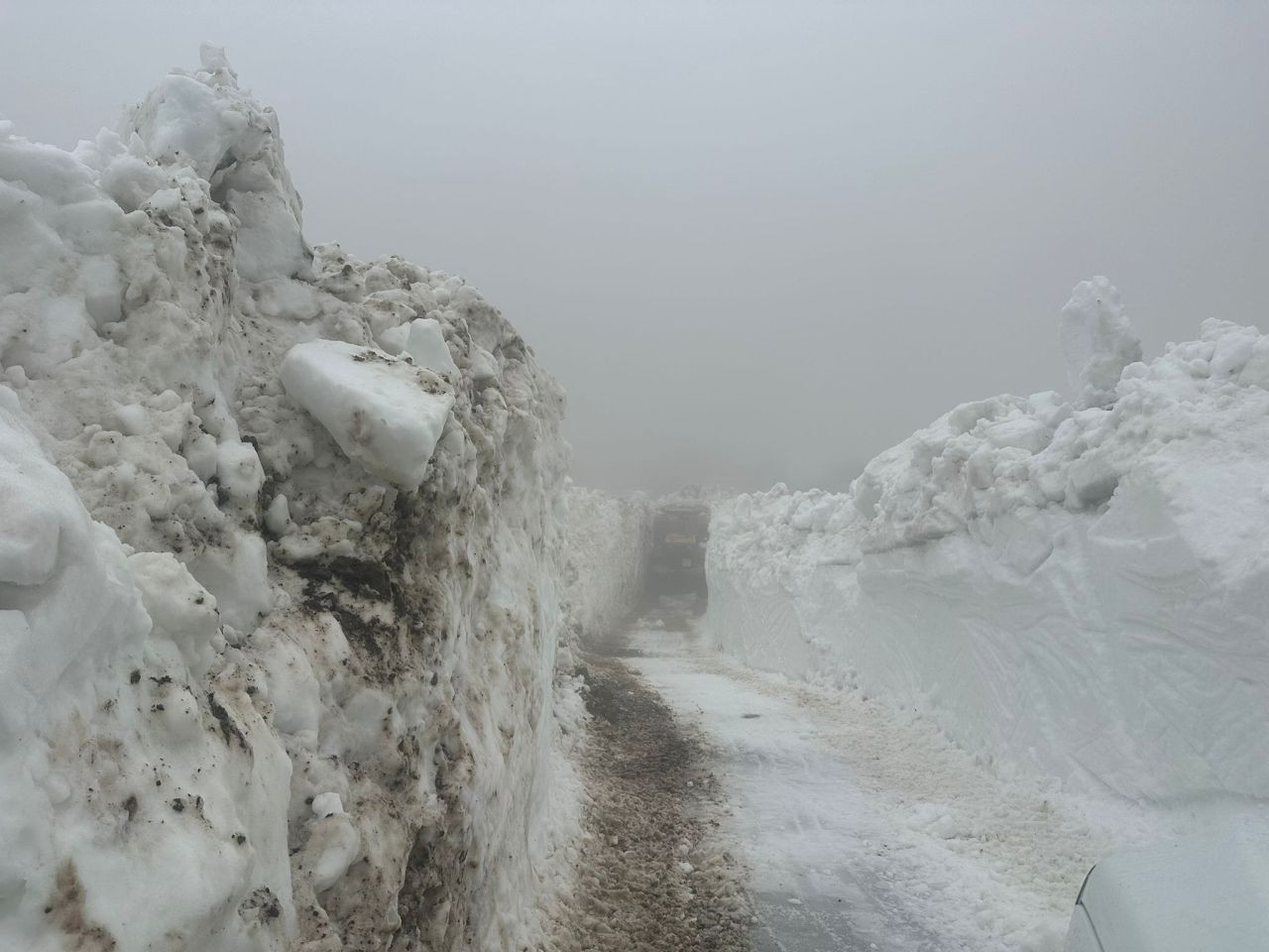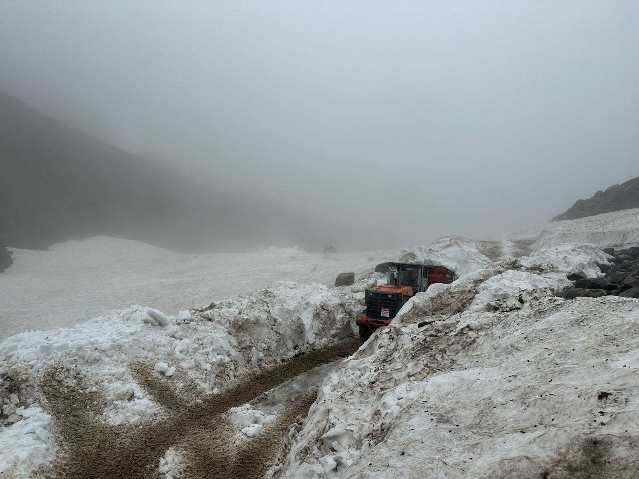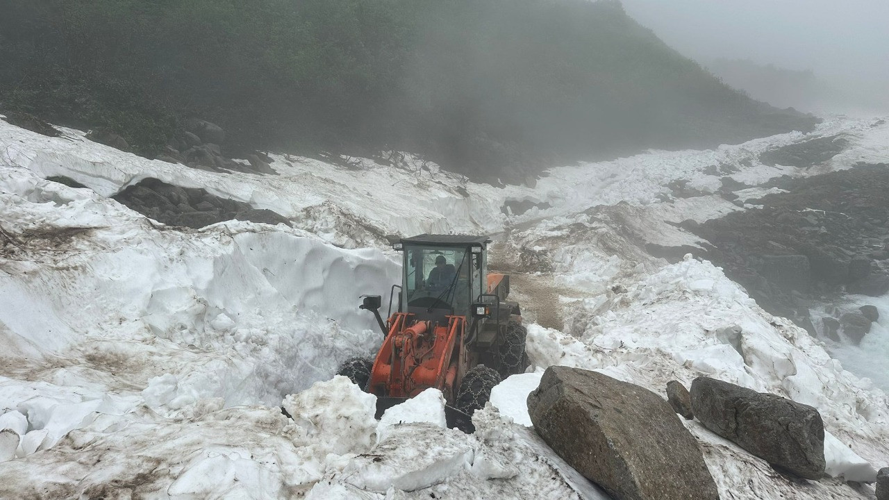 Rize’nin yüksek kesimlerinde haziran ayında karla mücadele eden ekipler, kar kalınlığının yer yer 5 metreyi aştığı bölgede iş makineleriyle yol açma çalışması yürütüyor.