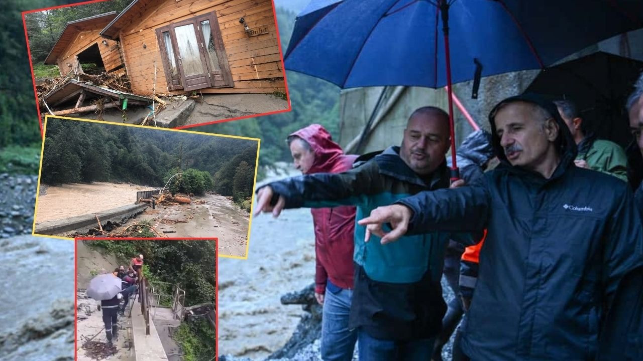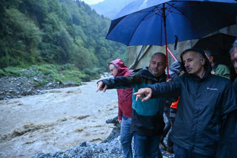 Ulaştırma ve Altyapı Bakanı Abdulkadir Uraloğlu ile Gençlik ve Spor Bakanı Osman Aşkın Bak sel afetinin etkili olduğu Rize'nin Çamlıhemşin ilçesine gelerek incelemelerde bulundu.