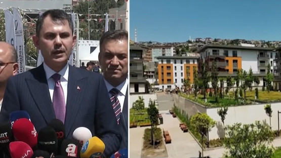 Bakan Kurum, "Deprem bölgesinde saatte 23 günde 550 konut hızlı bir şekilde inşa edilerek yolumuza devam ediyoruz" ifadelerini kullandı.