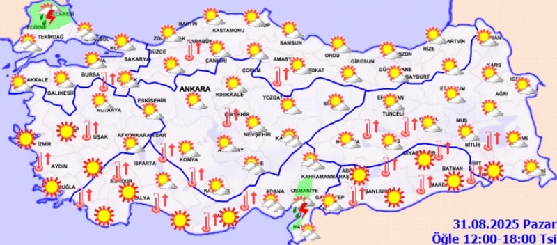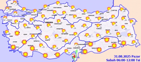 Meteoroloji Genel Müdürlüğü tarafından yapılan tahminlere göre: Marmara'nın kuzeybatısı ile Doğu Akdeniz'in parçalı, yer yer çok bulutlu, Edirne, Kırklareli ve Osmaniye çevreleri ile Adana'nın doğu, Kahramanmaraş'ın güneybatı, Hatay'ın kıyı kesimlerinin yerel sağanak ve gök gürültülü sağanak yağışlı, diğer yerlerin az bulutlu ve açık geçeceği tahmin ediliyor.