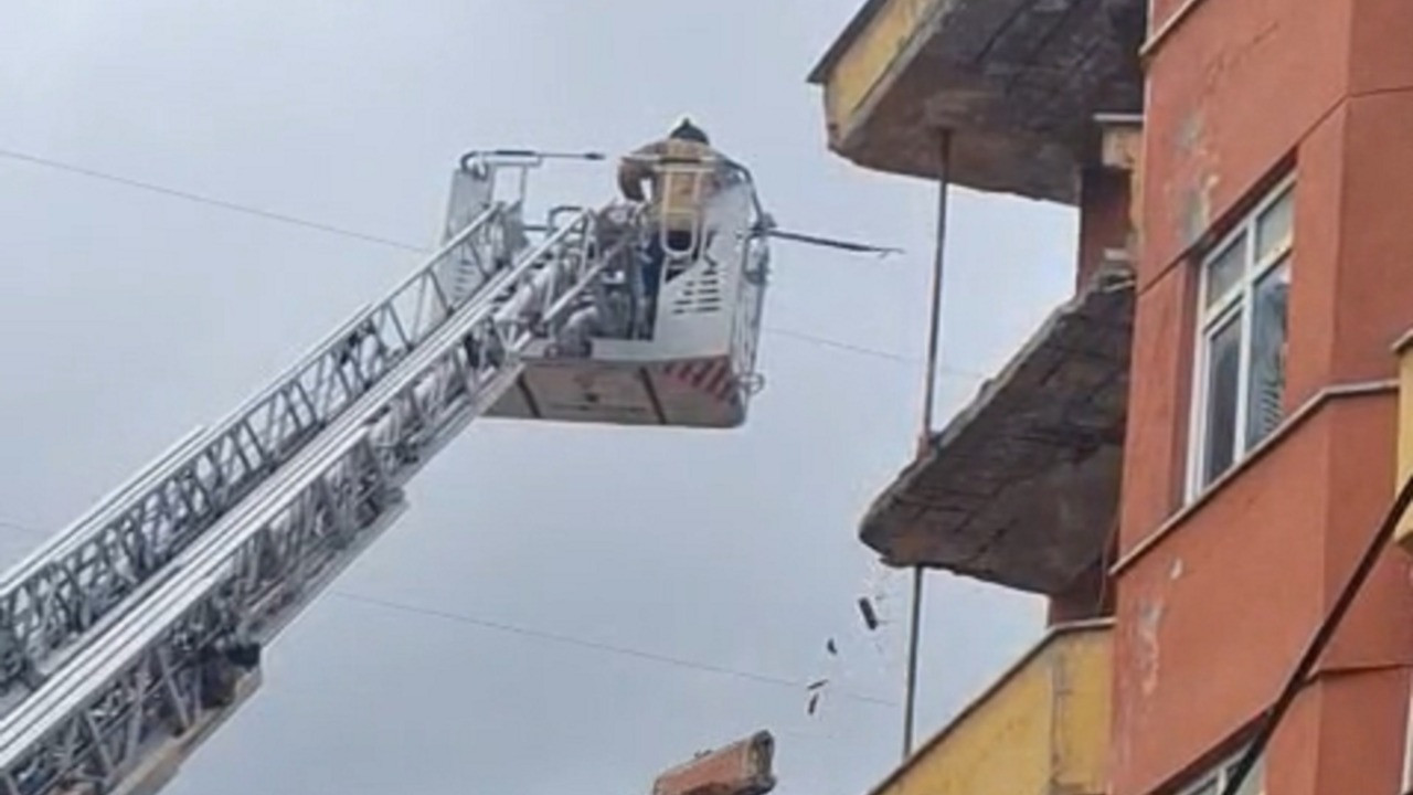 İtfaiye ekipleri merdiven aracıyla çöken balkona ulaşarak tehlikeli olan diğer parçaları da levye yardımıyla kopardı.