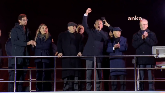 "Bu soğuk günde biliyorum kilometrelerce yürüyerek buralara geldiniz, engelleri barikatları aşarak buraya geldiniz. Hepinize gönülden teşekkürlerimi sunuyorum. Bugün sabah saatlerinde gözaltına alınan sadece Ekrem İmamoğlu değildir. Bugün sabah saatlerinde gözaltına alınan 16 milyon İstanbullunun iradesidir. Bugün sabah saatlerinde gözaltına alınan kent lokantası sayesinde et yüzü gören emeklilerdir.