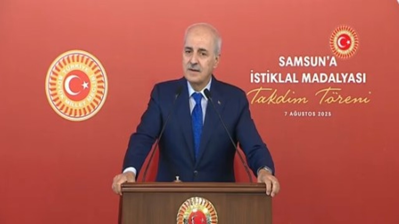 TBMM Başkanı Numan Kurtulmuş, Meclis Şeref Holü'nde düzenlenen "Samsun'a İstiklal Madalyası Takdim Töreni"nde konuştu.