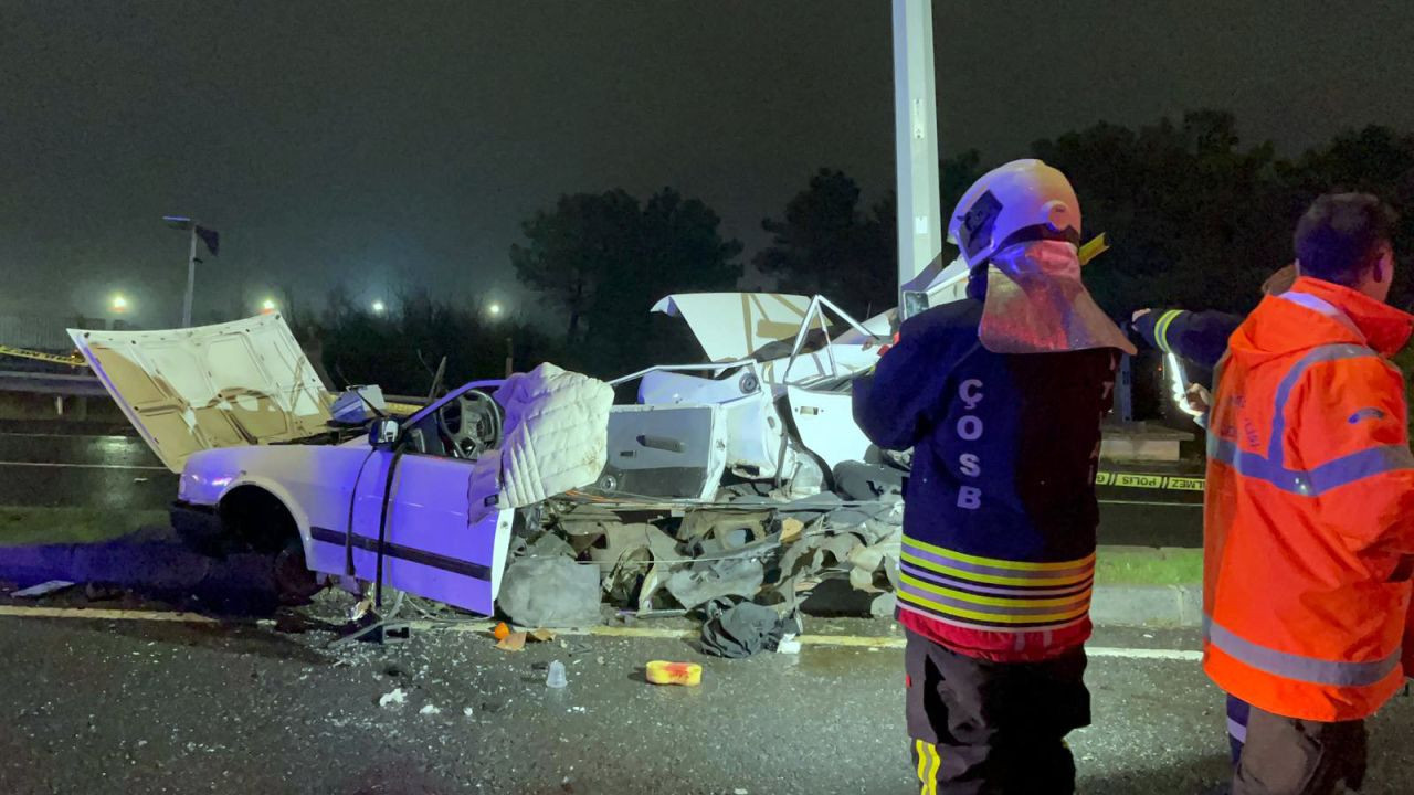 Yolda savrulan otomobil aydınlatma direğine çarptı. Çarpmanın şiddetiyle otomobil ikiye bölünürken, ihbar üzerine bölgeye sağlık, polis ve itfaiye ekipleri sevk edildi.