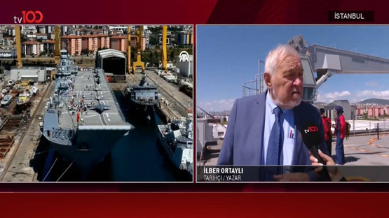 Prof. Dr. İlber Ortaylı, Türkiye’nin ürettiği Türk donanmasının önde gelen gemilerinden TGC Anadolu’yu tv100 muhabiri Gülay Alaca’ya değerlendirdi. Türk donanmasına katılan yerli savunma sanayii ürünü gemiler hakkında övgüler sıralayan İlber Ortaylı; “Çok şaşırdım. Çok fazla bir fizik kuvvet veriyor. Ayrı stratejik önemi var. Söylenene göre bin milin üstünde bir sahayı da kontrol ediyor. Çok büyük bir savunma kuvveti. Bu yüzen bir ordu” ifadelerini kullandı.