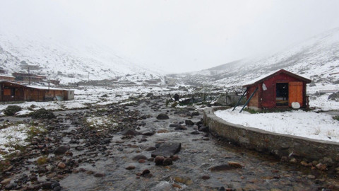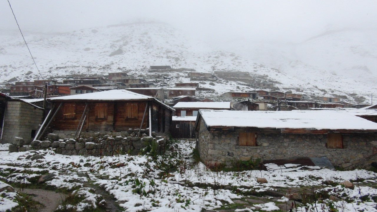 Rize’nin Çamlıhemşin ilçesine bağlı, 2 bin 300 rakımlı Yukarı Kavrun Yaylası’nda kar kalınlığı yer yer 15 santimetreye ulaştı. Yeşil örtüyle kaplı yayla evlerinin çatıları, beyaz kar örtüsüyle kaplandı.