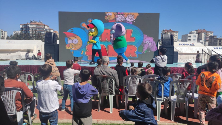 Film gösteriminin yanı sıra Kral Şakir ve Fil Necati'nin maskotları depremzede çocuklar için gösteri yaparak kurulan platformda çocukları eğlendirdi.