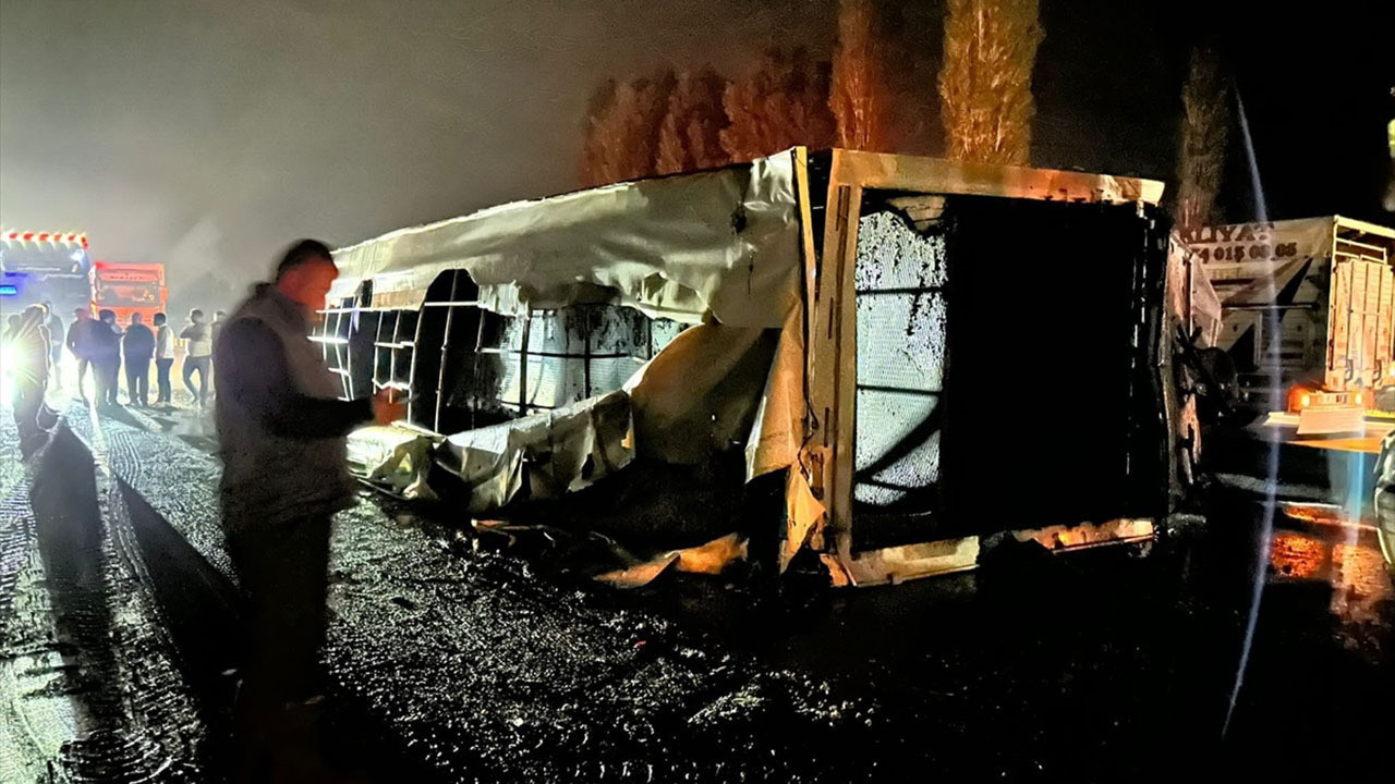 Alınan bilgiye göre, sürücüsünün ismi ve plakası henüz öğrenilemeyen büyükbaş hayvan yüklü tır, Afyonkarahisar - Uşak kara yolu Çalışlar köyü yakınlarında devrilerek yanmaya başladı.
