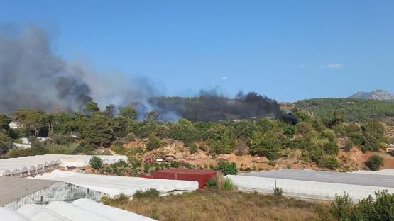 Yerleşim yerleri ve seraların da bulunduğu bölgenin yakınındaki yangın, rüzgarın etkisiyle yayıldı.