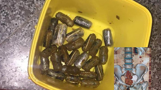 Hayatını riske atarak kuryelik yaptığı saptanan şüphelilerin bağırsaklarındaki kapsül halindeki uyuşturucuların doğal yolla çıkması sağlandı. Gözaltındaki şüphelilerin sorgusu sürüyor.