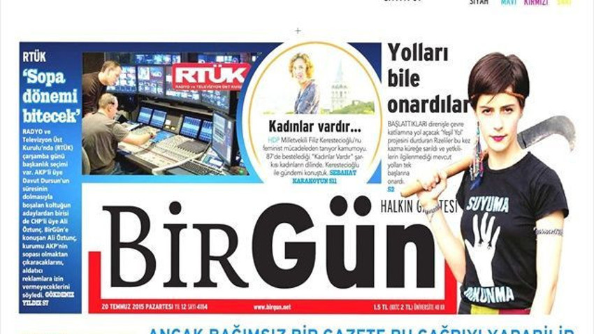 Teknolojiye yenik düşmeye başlayan kağıt baskıya, çağın muhalefet diliyle bir anlam katmaya çalışan, yazarlarını, haber çeşitliliğini artıran, "Her gün daha iyi BirGün" çabasının arkasında durmaya devam edeceğinize yürekten inanıyoruz. Bu hafta cuma günü Türkiye Gazeteciler Cemiyeti 2015 Basın Özgürlüğü Ödülü, kurum dalında BirGün'e veriliyor. Bu Cemiyet'ten alacağımız bu yıl ikinci ödül. Aynı BirGün'ün çalışanları hakkında sadece yazdıklarından dolayı yıllarca hapis istemiyle yargılanıyor. Çelişki mi? Özgür kalmak her türlü sermaye, iktidar odağının uzağında olmayı, ekonomik gücünü halktan, demokratik kurumlardan, emek örgütlerinden almayı, her türlü cezayı, tehdidi alay edercesine geri çevirebilmeyi gerektirir. Bizim gibi ülkelerde özgürlüğün de bir bedeli vardır.