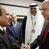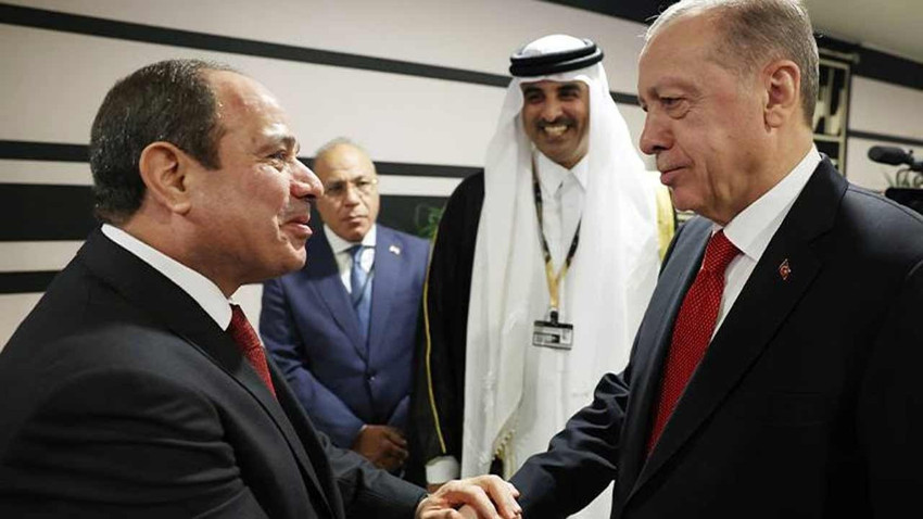 Erdoğan, 2022 FIFA Dünya Kupası'nın açılışı dolayısıyla liderlere verilecek resepsiyonda Mısır Cumhurbaşkanı Abdülfettah es-Sisi ile selamlaştı.