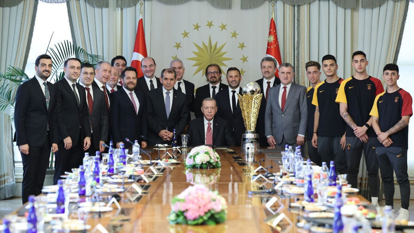 Cumhurbaşkanı Recep Tayyip Erdoğan, 2022-2023 Süper Lig şampiyonu Galatasaray ekibini kabul etti.