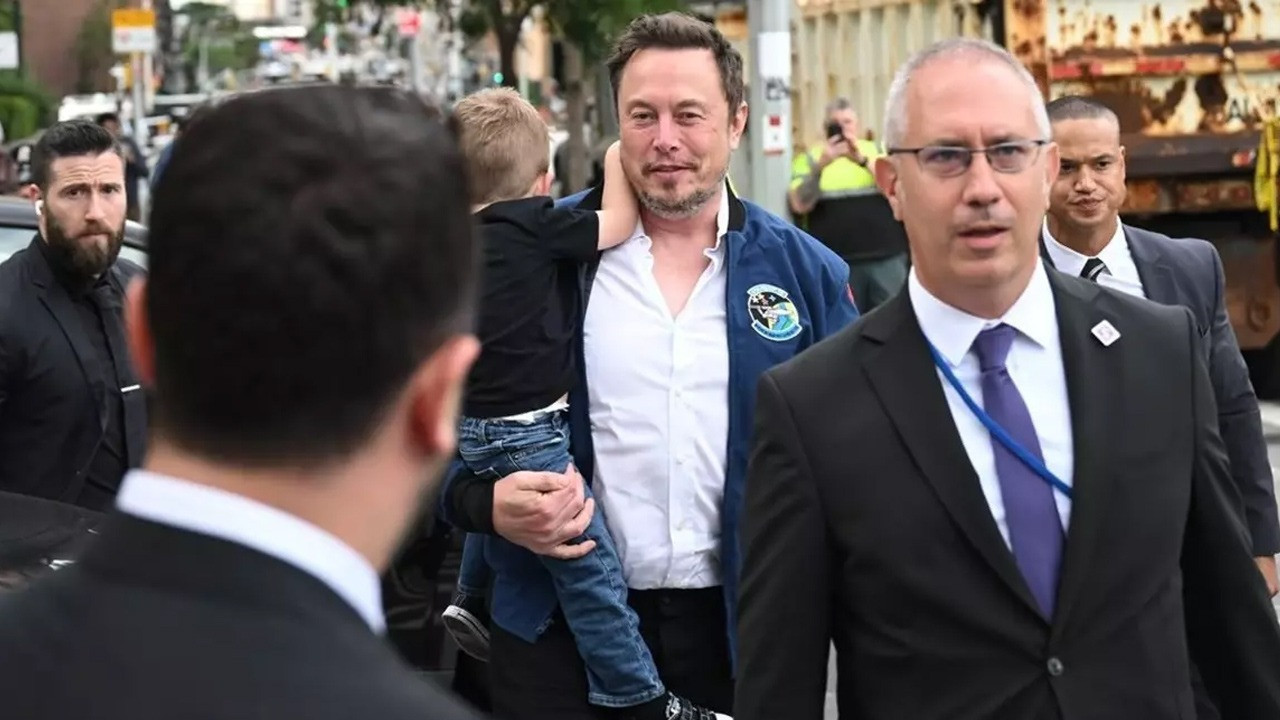 Elon Musk'ın görüşmeye oğlu ile gelmesi dikkat çekti. Musk Türevi'ne böyle giriş yaptı: