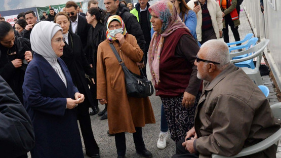 Emine Erdoğan ve beraberindekiler, daha sonra helikopterle Nurdağı ilçesine geçti. Nurdağı'nda kurulu konteyner kenti ziyaret eden Erdoğan, depremzede aileler ile görüştü.