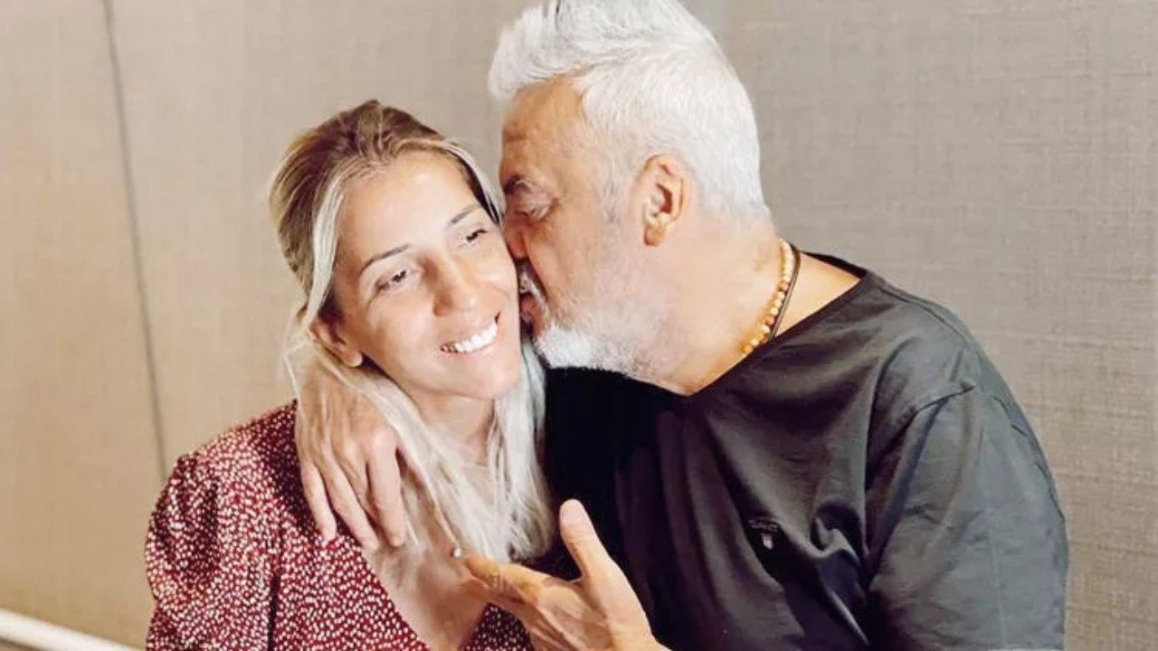 Sağlığına kavuşan Mesut Akusta, sevincini yanından bir an olsun ayrılmayan eşi Şafak Özbir Akusta’yı öperek gösterdi.