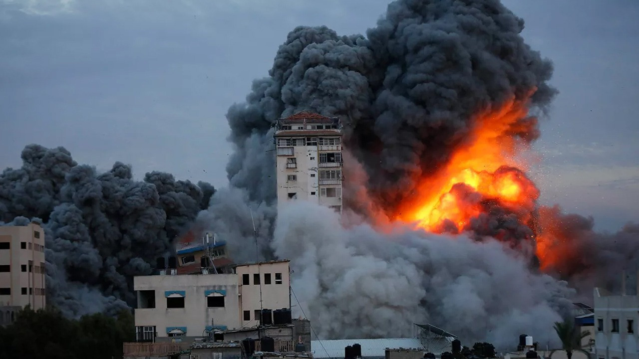 İsrail savaş uçakları Gazze’nin merkezinde yer alan Er-Rimal semtindeki Ulusal İslam Bankası merkezini vurdu.