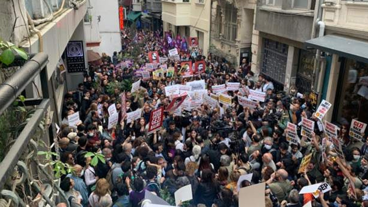 Gezi Davası’nda verilen karar sonrasında İstanbul’da Taksim Dayanışması’nın çağrısıyla Taksim İpek Sokak’ta bulunan TMMOB Makina Mühendisleri Odası İstanbul Şubesi’nin önünde saat 19.00’da çok sayıda kişi bir araya geldi.