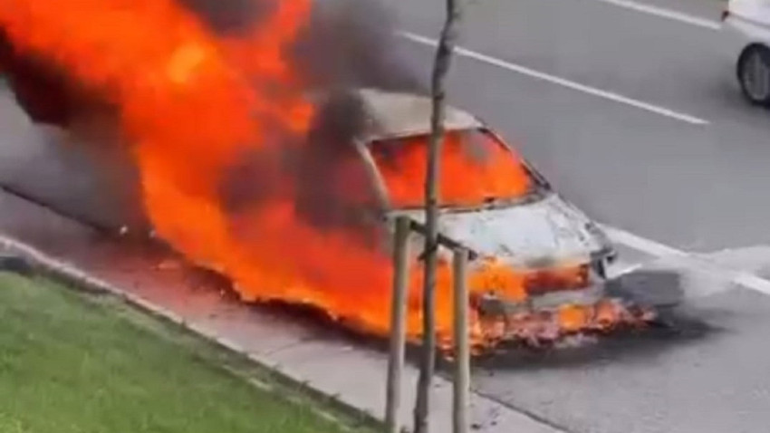 Otomobilin yandığı anlar ise çevredekiler tarafından cep telefonu kamerasıyla kaydedildi. Yangında ölen ya da yaralanan olmazken, hafif ticari araç kullanılamaz hale geldi.