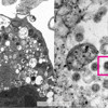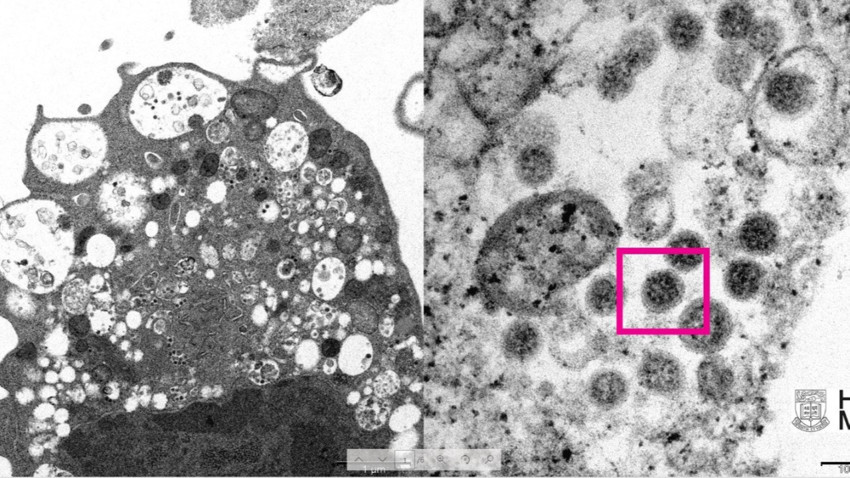 HKUMed’den yapılan açıklamada, araştırmacılar tarafından SARS-CoV-2 virüsünün Omicron varyantının elektron mikroskobu görüntüsünün ortaya çıkarıldığı belirtildi. Üniversite tarafından yayınlanan fotoğrafın solunda, küçük siyah viral partiküller içeren şişmiş veziküllerle hücre hasarını gösteren, SARS-CoV-2 Omicron varyantı ile enfeksiyondan sonra bir maymun böbrek hücresinin (Vero E6) düşük büyütmeli elektron mikrografının yer aldığı ifade edildi. Fotoğrafın sağında ise yüzeylerinde korona şekilli sivri uçlara sahip viral partikül kümelerini gösteren enfekte bir Vero E6 hücresinin yüksek büyütmeli elektron mikrografının yer aldığı belirtildi.