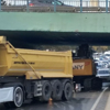 Kartal’da dorsesinde iş makinesi taşıyan TIR’ın köprü altında sıkışması trafik yoğunluğuna neden oldu.