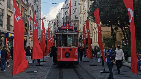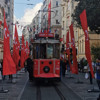 Beyoğlu Belediyesi Taksim'in dört bir yanını bayrama hazırladı. İstiklal Caddesi'ndeki tarihi nostaljik tramvay yolu boydan boya bayrakla süslendi. Nostaljik tramvayı kullanan vatandaşlar bayrak manzarasıyla yolculuk ediyor.