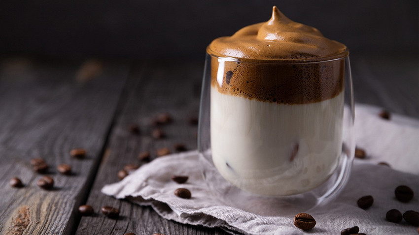 "Dalgona" adı, bal peteği şekerlemesine benzer bir tada sahip eski moda bir Kore sokak lezzetinden gelmektedir. Dalgona’nın tadı, Kore’ye özgü bir şeker olan Dalgona’ya benzetilmiştir. Bu yüzden ünlü bir aktör kahveye “Dalgona” ismini vermiştir.