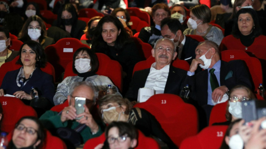 Kılıçdaroğlu, CHP Kadın Kolları Başkanı Aylin Nazlıaka’nın Ankara’daki bir sinema salonunda bu akşam organize ettiği film gösterimine eşi Selvi Kılıçdaroğlu ile beraber katıldı.