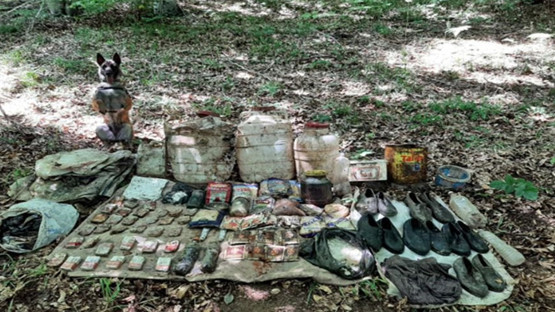 Arama köpeği ve dedektörlerle sığınakta yapılan aramada çeşitli yaşam malzemeleri bulundu. Birçoğunun kullanılmış ve çürümüş olduğu belirlenirken, delil niteliği taşıyan malzemeler muhafaza altına alındı.