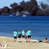 Sahilden yarım mil açıkta alev alev yanan tekneden bazı turistler denize atlarken çevredeki botlar, tekneler ve sahil güvenlik ekipleri turistleri kurtararak karaya çıkardı.