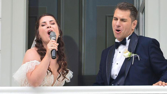 Sevinç Erbulak ve Volkan Cengen, davetlilerin karşısına Athena grubunun ‘Ben Böyleyim’ şarkısını söyleyerek çıktı. Balkondan konukları selamlayan ikili, davetlilere keyifli anlar yaşattı.