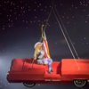 Üstü açık kırmızı araba, 16 Carriages performansı sırasında havadayken yan yattı.