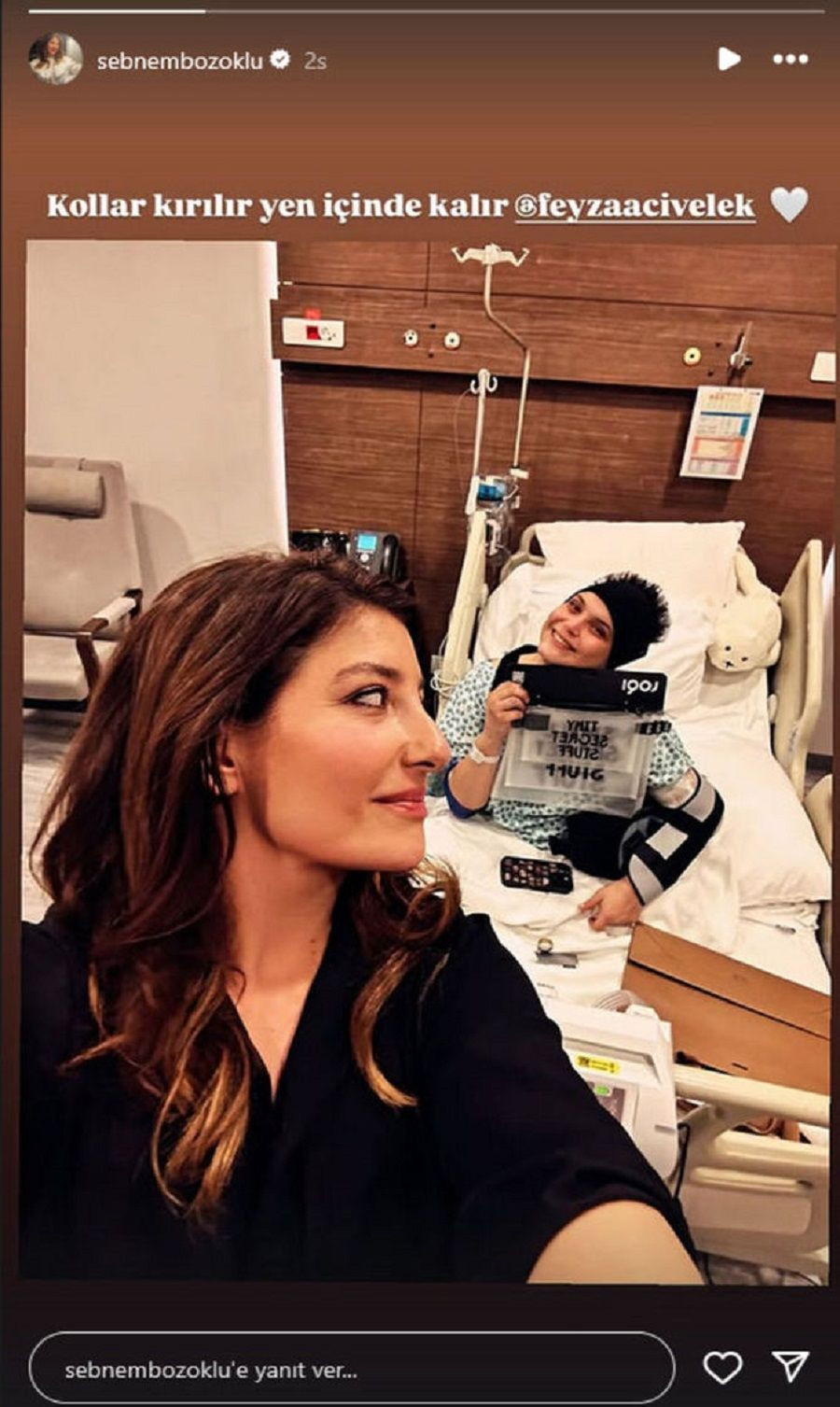 Feyza Civelek mart ayında kolunu kırmıştı. 'Kızılcık Şerbeti'nde 'Meri' karakterine hayat veren Şebnem Bozoklu, kolundan operasyon geçiren rol arkadaşını hastanede ziyaret etmişti. Bozoklu, fotoğraflarına; "Kollar kırılır yen içinde kalır" notunu düşmüştü.