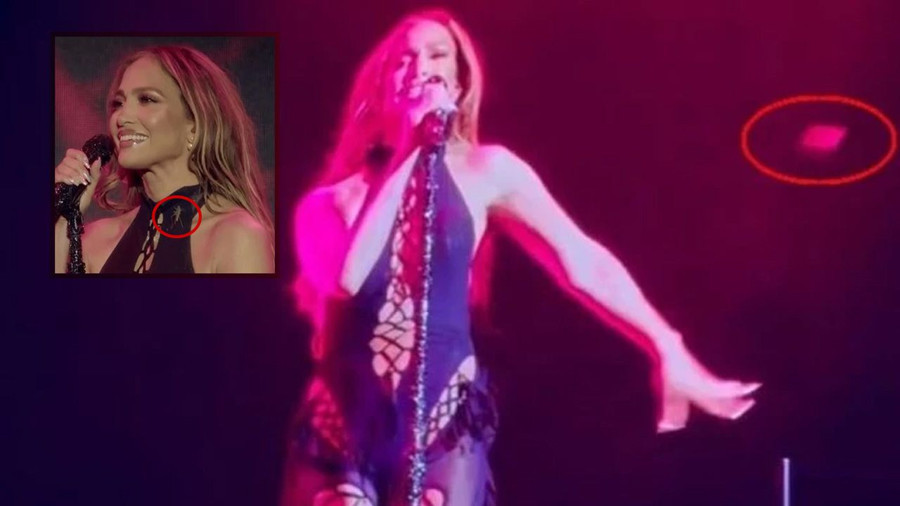 Ünlü şarkıcının performansı sırasında büyük bir cırcır böceği, önce boynunda dolaştı, sonra elbisesinin içine girdi. Paniğe kapılmadan durumu idare eden Jennifer Lopez, böceği eliyle alıp sahnenin öbür ucuna fırlattı.