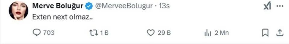 37 yaşındaki Merve Boluğur sosyal medya hesabında "Son zamanlarda sadece hikayelere sardım, film falan hak getire..." ifadelerini kullanarak iddiaları dikkate almadı.