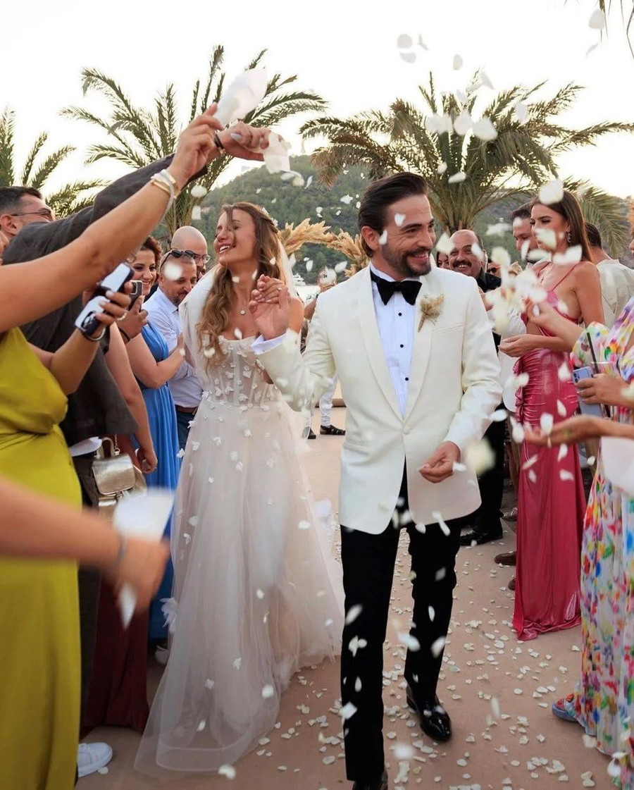 Bodrum'da hayatlarını birleştiren ünlü çifti, aileleri ve yakın dostları yalnız bırakmadı. İkilinin nikah şahitleri de Devrim Yakut, Alp Güler ve Berat Bumin olmuştu.