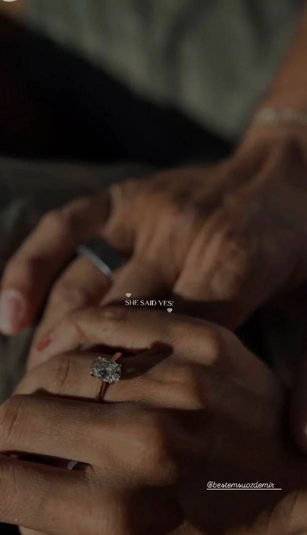 Öte yandan aşkları doludizgin devam eden ünlü çiftten sevindiren haber geldi. Sevgilisinin evlilik teklifine "Evet" diyen Bestemsu Özdemir, Instagram hesabından yüzüğünü paylaşarak takipçilerine güzel haberi duyurdu.