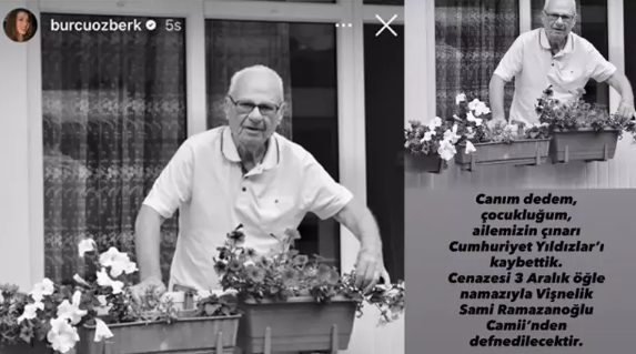 35 yaşındaki Özberk, Instagram hesabından yayımladığı mesajla, dedesi Cumhuriyet Yıldızlar'ın vefat ettiğini açıkladı.