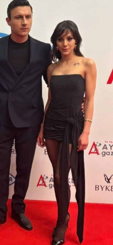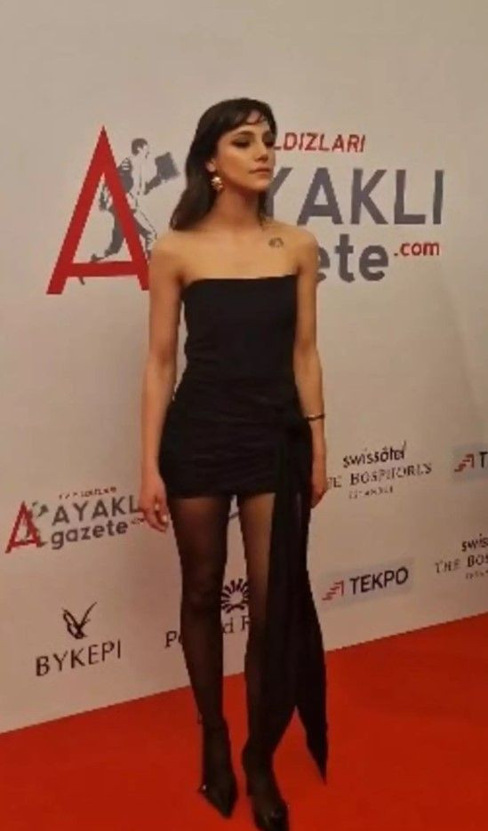Ödül töreni için siyah straplez, mini bir elbise giymeyi tercih eden Dilin Döğer saçlarını ise açık bıraktı.