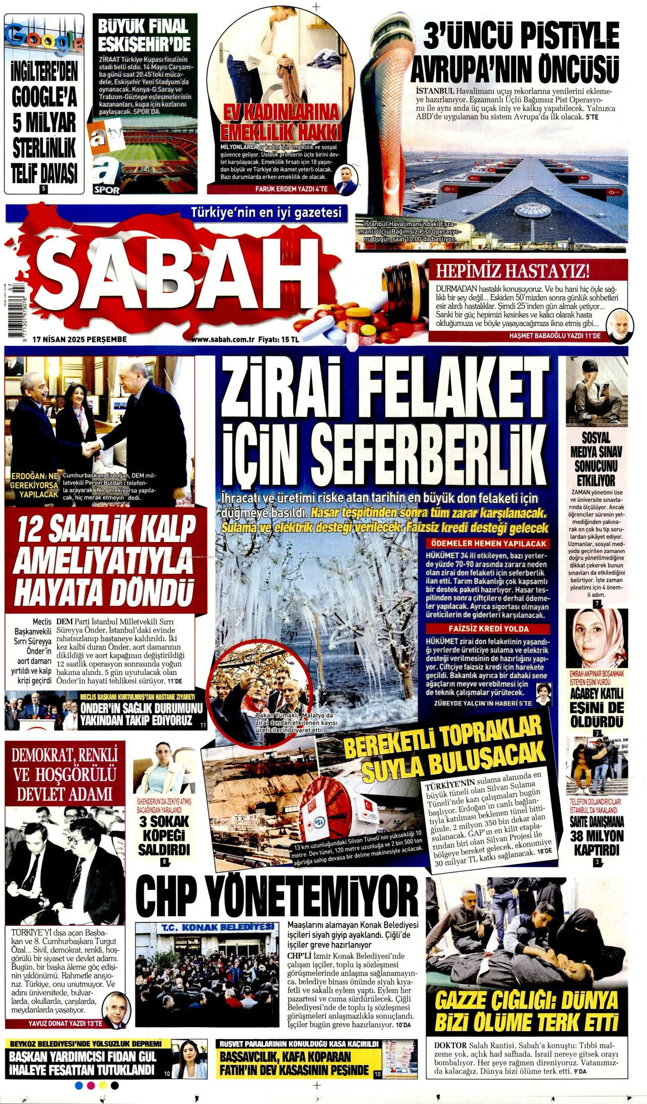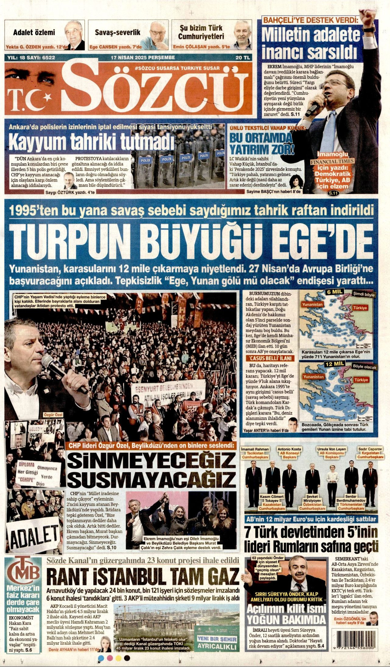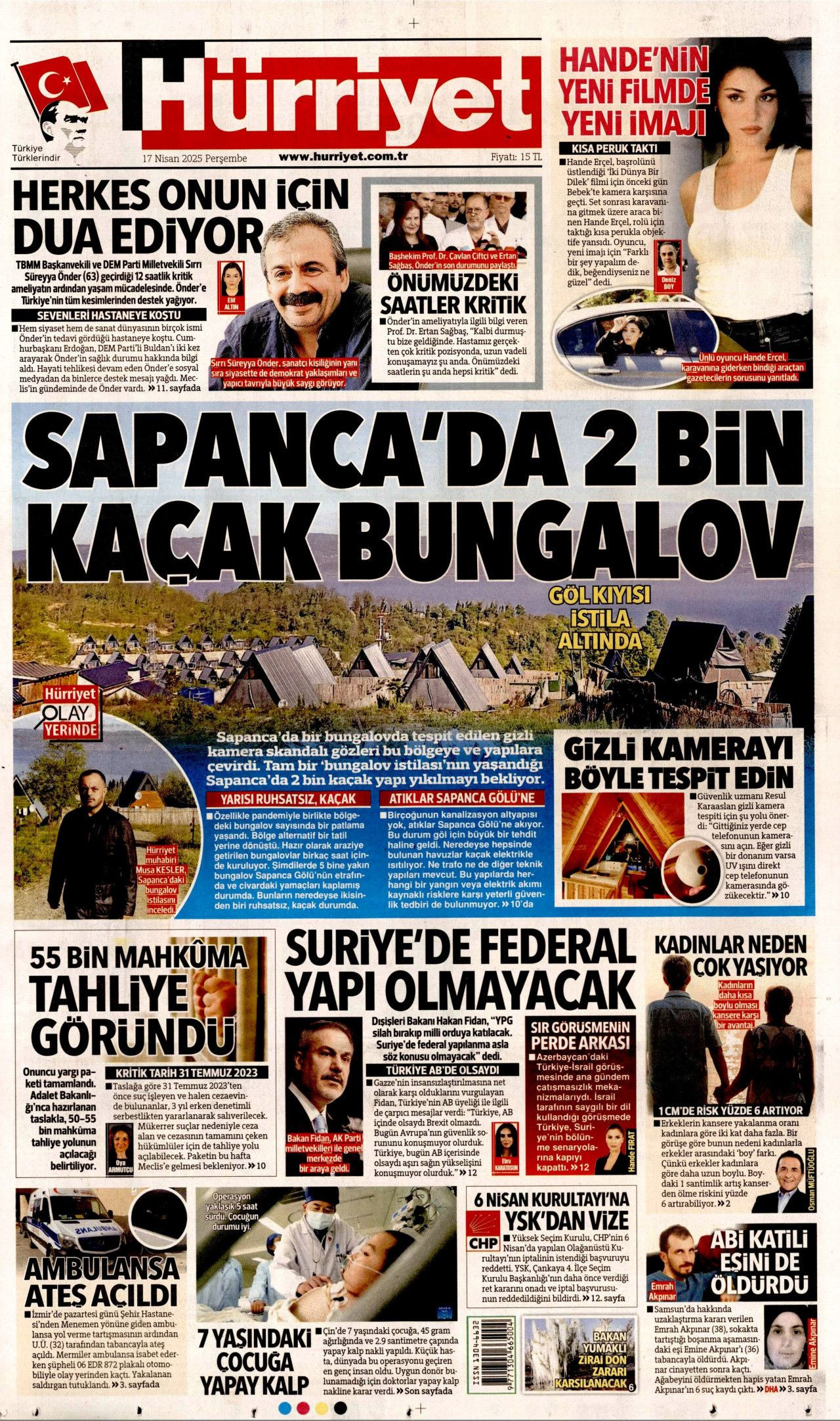 Sırrı Süreyya Önder'i Görmeyen İki Gazete. 17 Nisan 2025 Gazete Manşetleri