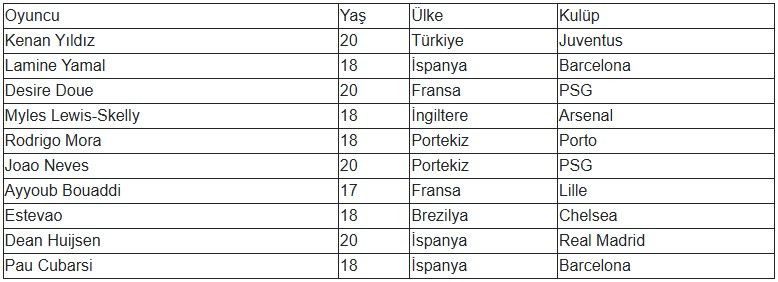 Juventus'ta forma giyen milli futbolcu Kenan Yıldız da adaylar arasında gösterildi.