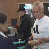 Tek başına havalimanına gelen ünlü teknik adam, yolcuların fotoğraf çektirme isteklerini geri çevirmedi.