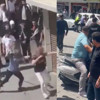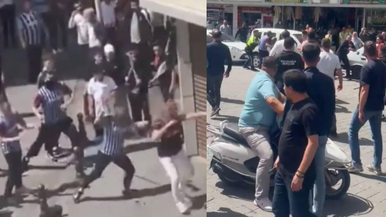 Taraftalar birbirlerine yumruk ve sopalarla saldırdı. Sosyal medyada gündem olan videoda kavga eden kişilerin birbirlerine bir şey fırlattıkları da görüldü.