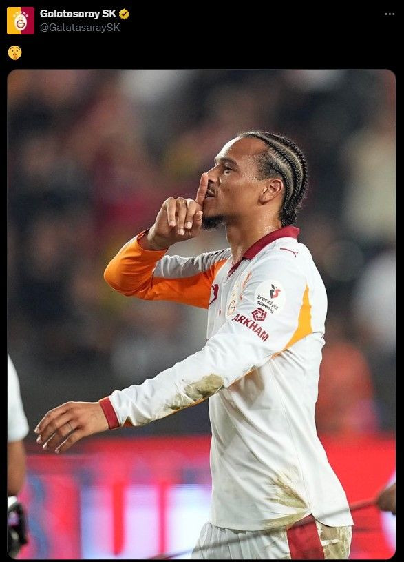 Sarı-lacivertlilerin paylaşımının ardından Galatasaray'dan yanıt gecikmedi. Yeni sezonun ilk maçından mutlu ayrılan sarı-kırmızılı kulüp, Fenerbahçe'nin haksız bir galibiyet aldığı yönünde yazı paylaşmasının ardından, cevap niteliğinde emoji paylaştı. Sane'nin fotoğrafının altına sus işareti yapılan paylaşım Fenerbahçe’nin paylaşımından tam 12 dakika sonra atıldı.