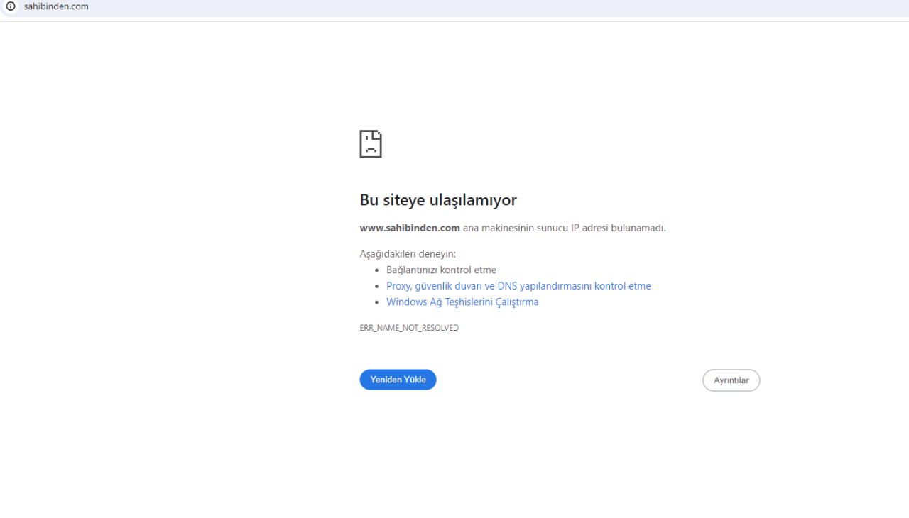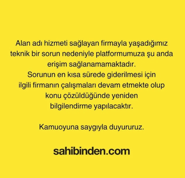 "Alan adı hizmeti sağlayan firmayla yaşadığımız teknik bir sorun nedeniyle platformumuza şu anda erişim sağlanamamaktadır.
