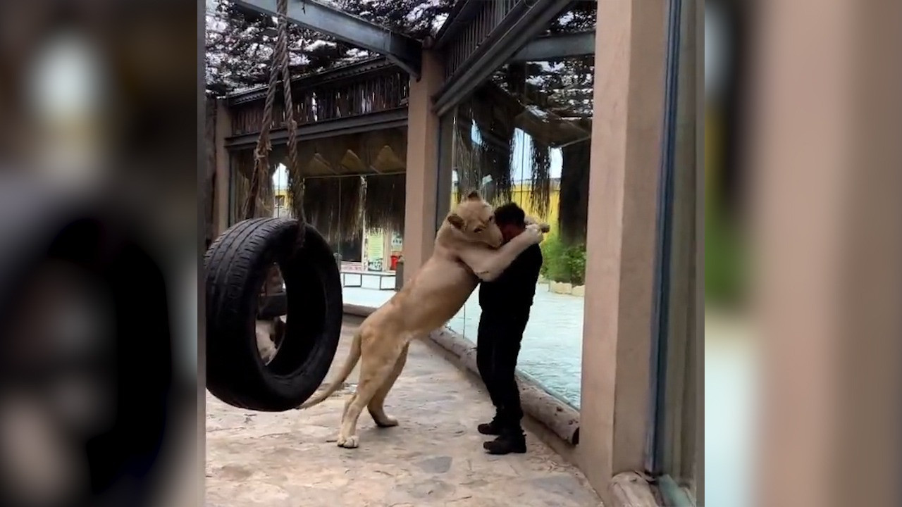 Sosyal medyada paylaşılan görüntülerde, Angel ve Yücel Yılmaz'ı kafeste birbirlerine sarıldığı anlar dikkat çekerken, devasa aslanın adeta bir çocuk gibi Veteriner Yılmaz'ın etrafında dolaştığı anlar gözler önüne serildi.